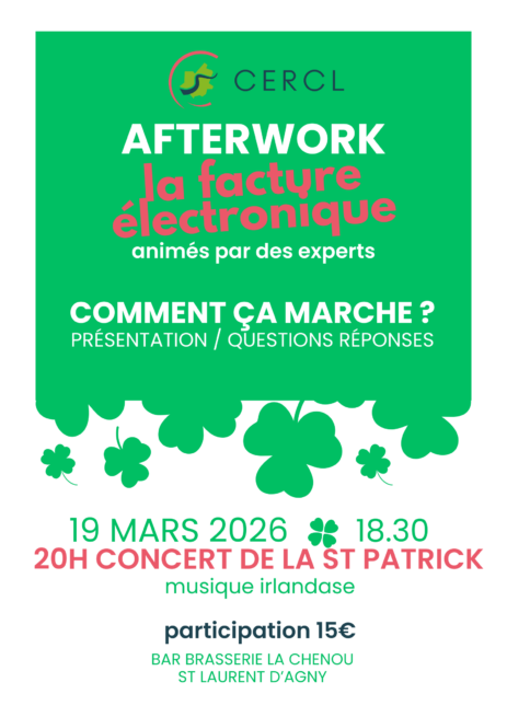 Afterwork – la facture électronique AgendaAfterwork – la facture électronique 19/03/2026 Bar brasserie La Chenou St Laurent d'Agny Je m’inscris